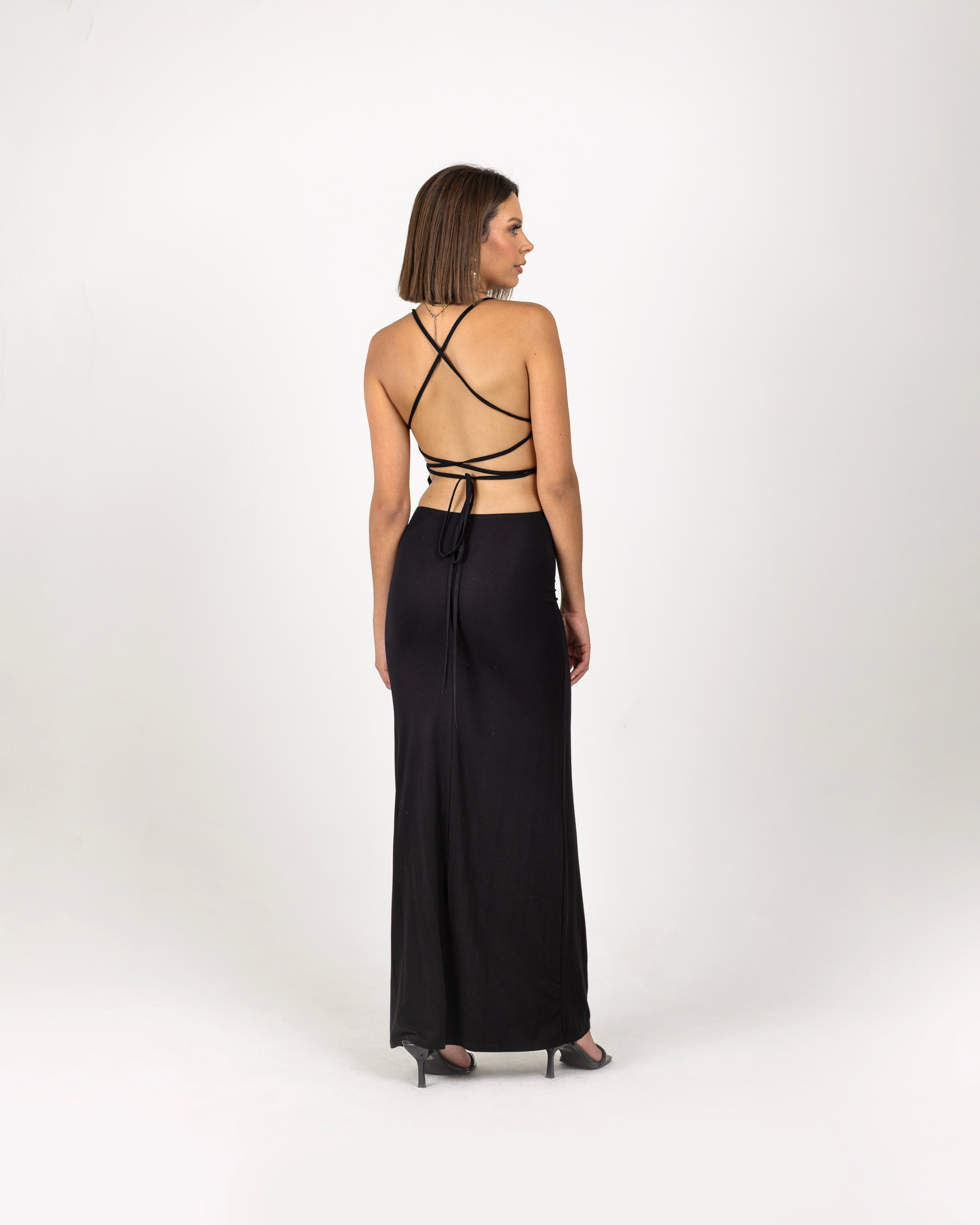 Beautiful Black Maxi, Backless, Criss-Cross back, Adjustable. Everyone needs a Little Black Dress.