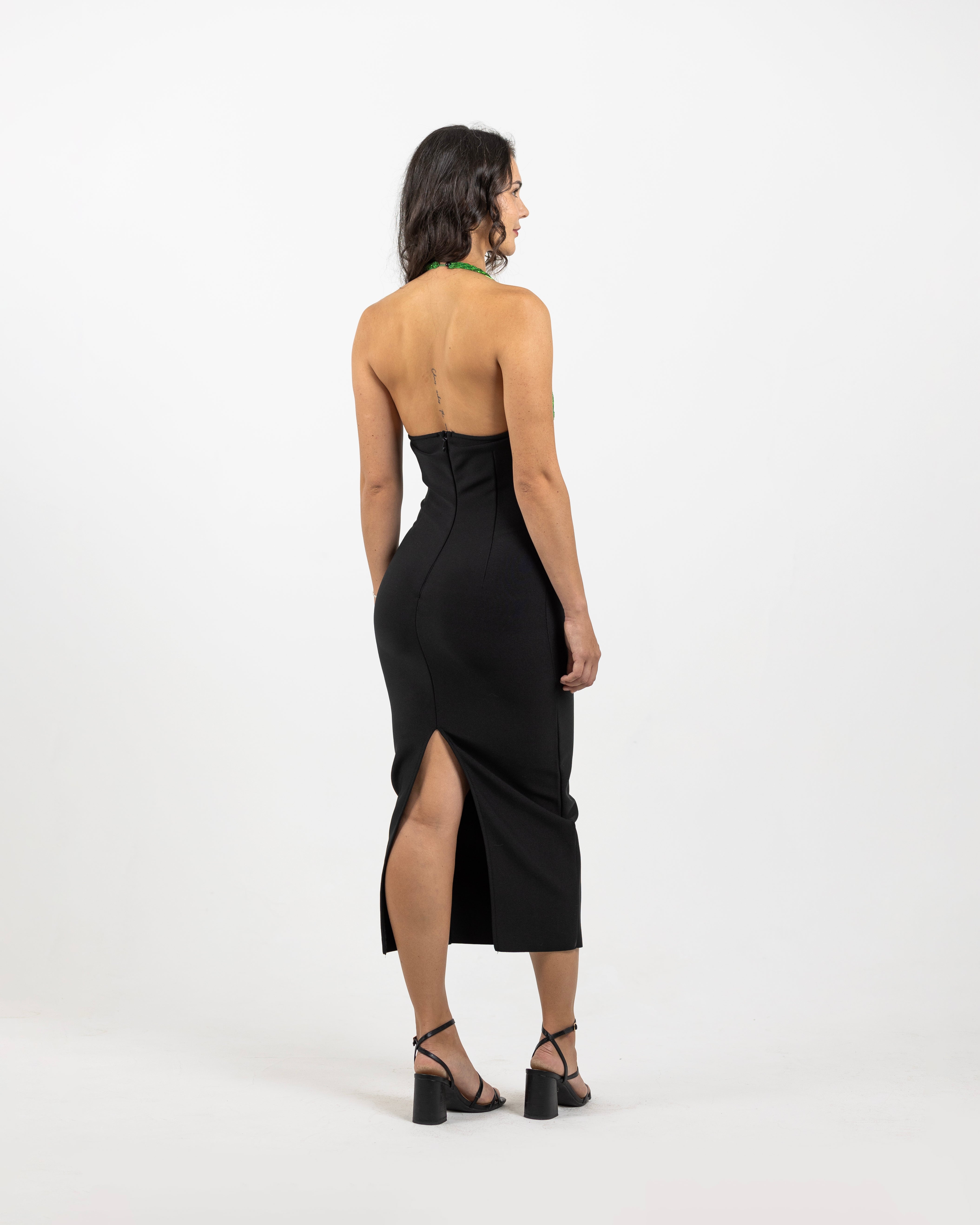 Details: Two-Toned, Cut out, fitted, sequence, halter neck, open back